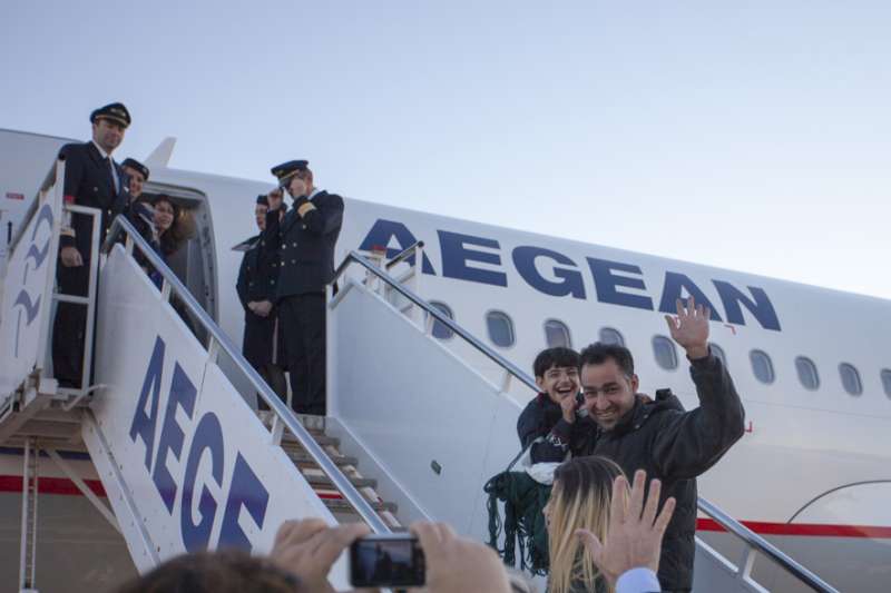 Asylum-seekers board a flight from Athens to Luxembourg. First asylum-seekers relocate from Greece to Luxembourg, UNHCR, www.unhcr.org/thumb1/563a3b376.jpg.